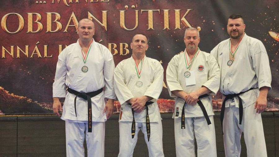A versenyt rögtön egy nagyszerű eredménnyel indítottuk az első napon. Sempai Altorjai Antal "Cápa" a veterán csapatversenyben lépett tatamira, ahol a dobogó második fokára állhatott fel, megszerezve a csapat ezüstérmét. Antal ráadásul nemcsak versenyzőként, hanem a csapat kísérőjeként és támaszaként is jelen volt a helyszínen, végig segítve és motiválva a többieket.